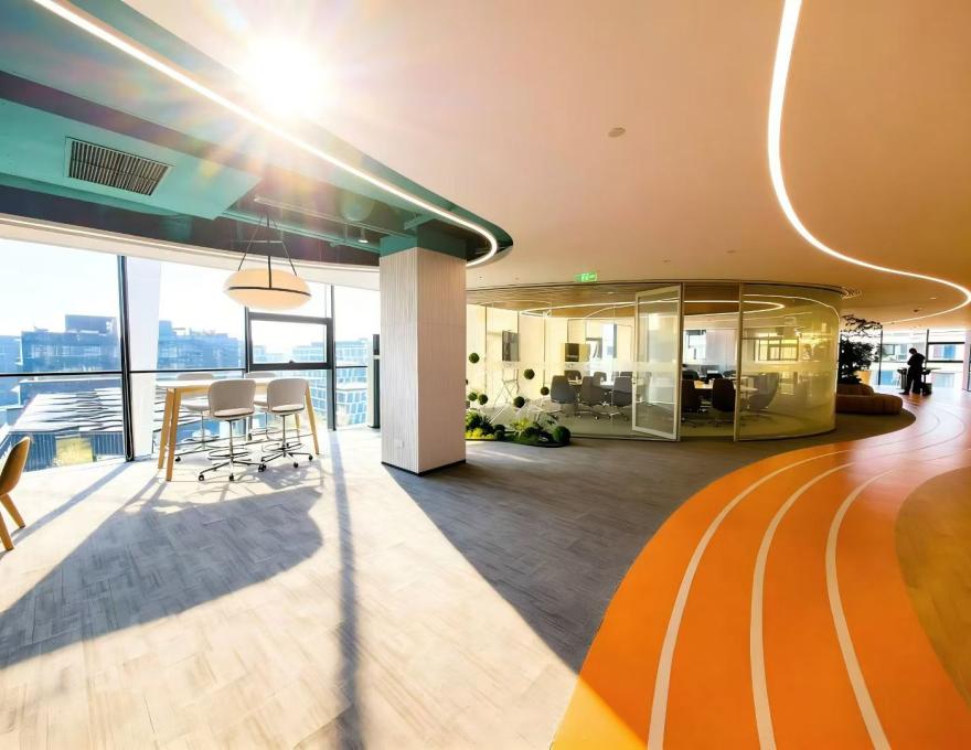IBP虹桥上城配置商业配套与文体中心,覆盖餐饮、咖啡、便利服务及运动、交流等功能,并设有城市会客厅,为企业开展产品发布、技术交流和商务洽谈提供高品质空间,使科研创新、商务交流与日常办公在园区内形成良性互动。
